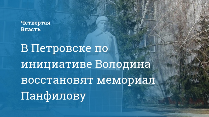 В Петровске Саратовской области будет отреставрирован и мемориал, посвященный выдающемуся советском военачальнику, Герою Советского Союза Ивану Панфилову и погибшим во время войны жителям. О такой инициативе председателя Госдумы Вячеслава Володина сообщается в инстаграм-аккаунте volodin.saratov.