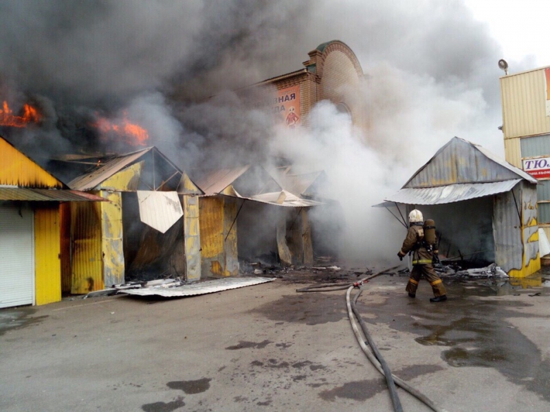 В Энгельсе огонь охватил 1500 кв.м на рынке «Изобильный»