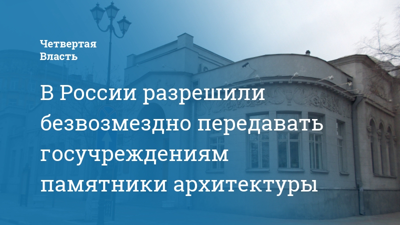 Агентство уточняет, что воспользоваться новой нормой смогут федеральные, региональные и муниципальные органы власти. При этом сейчас объекты культурного наследия могут передать лишь культуроохранным и детским общественным объединениям, организациям инвалидов, образовательным, благотворительным и религиозным организациям, а также всероссийским союзам творчества, учреждениям науки и культуры, а также «центрам исторического наследия президентов РФ, прекративших исполнение своих полномочий».