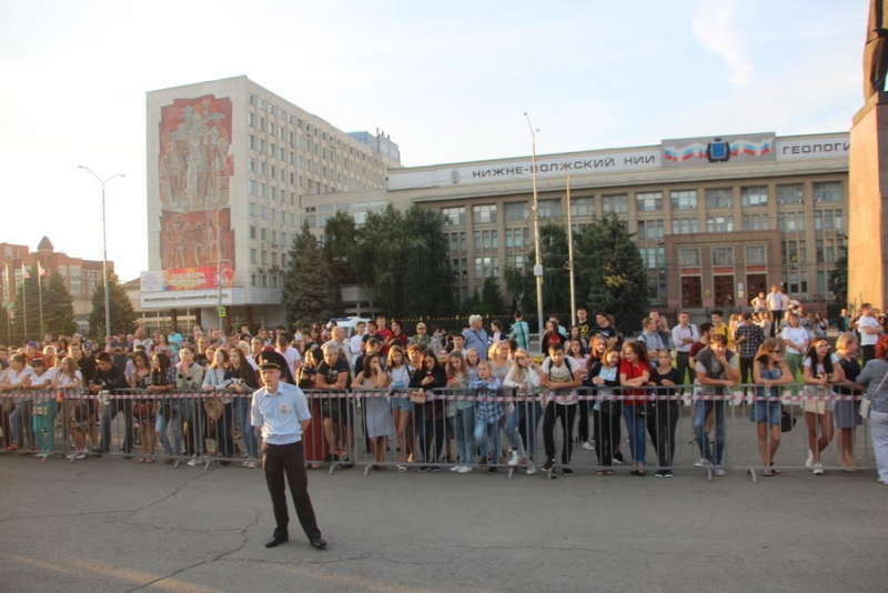 Сейчас выпускники их родители танцуют под современные хиты, ожидая начала праздника. На площади уже собралось несколько тысяч выпускников и их родителей. Для саратовцев, также желающих увидеть концерт, организована отдельная зона за периметром площади. Ведущие со сцены разогревают публику различными шутками и призывами к танцам. Кроме того, творческие коллективы исполняют танцы, в том числе под песни Децла, Паши Чехова и Summer Cem. Также перед выпускниками выступают танцевальные объединения вузов Саратова.