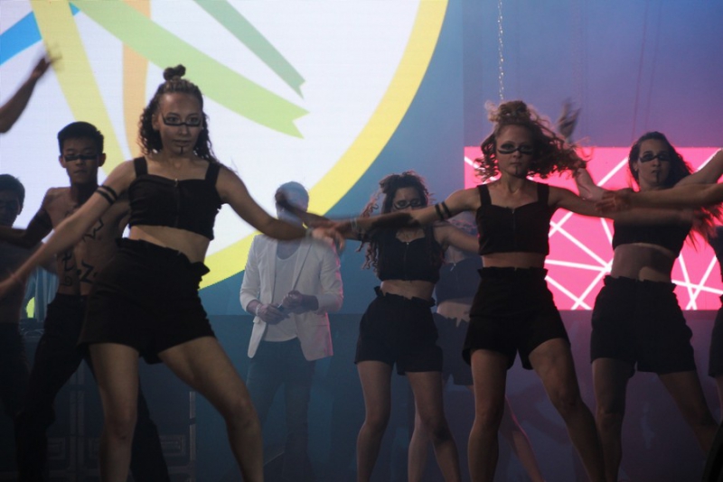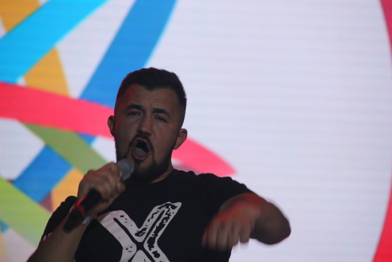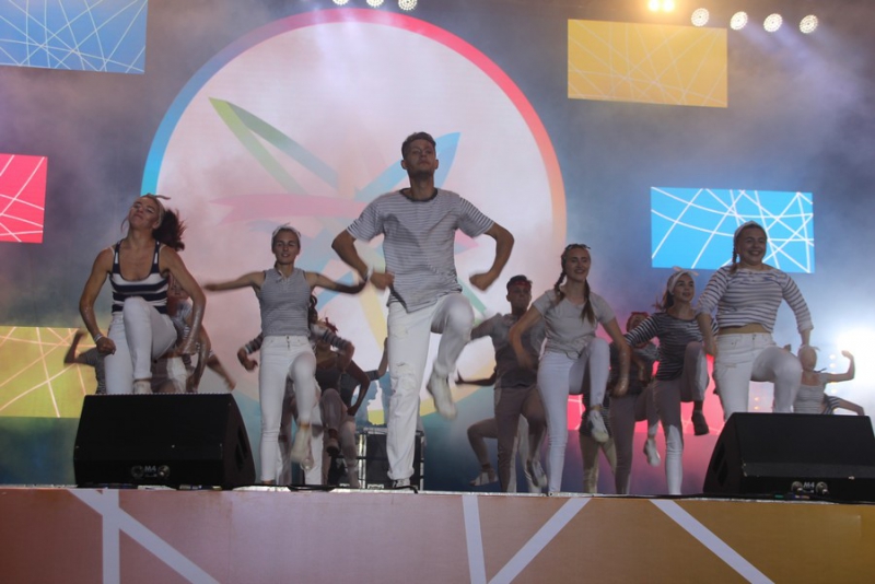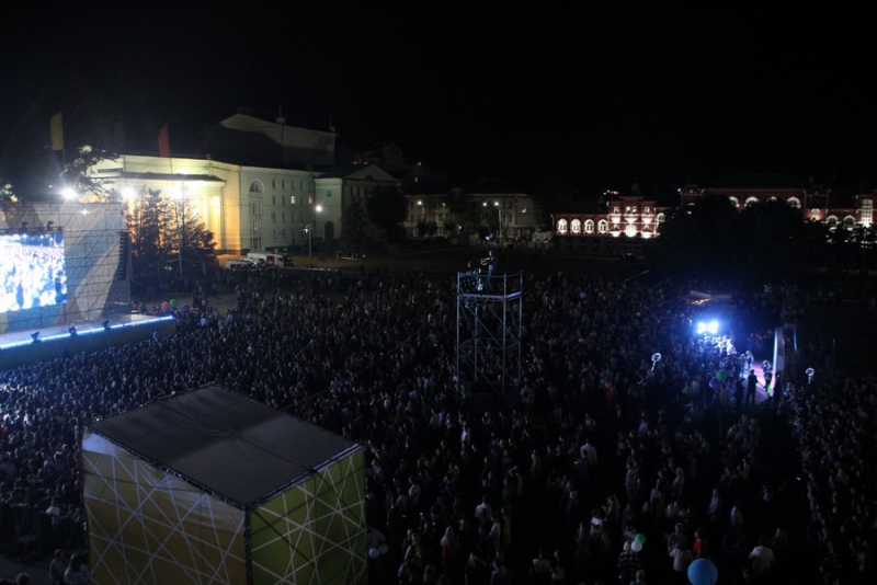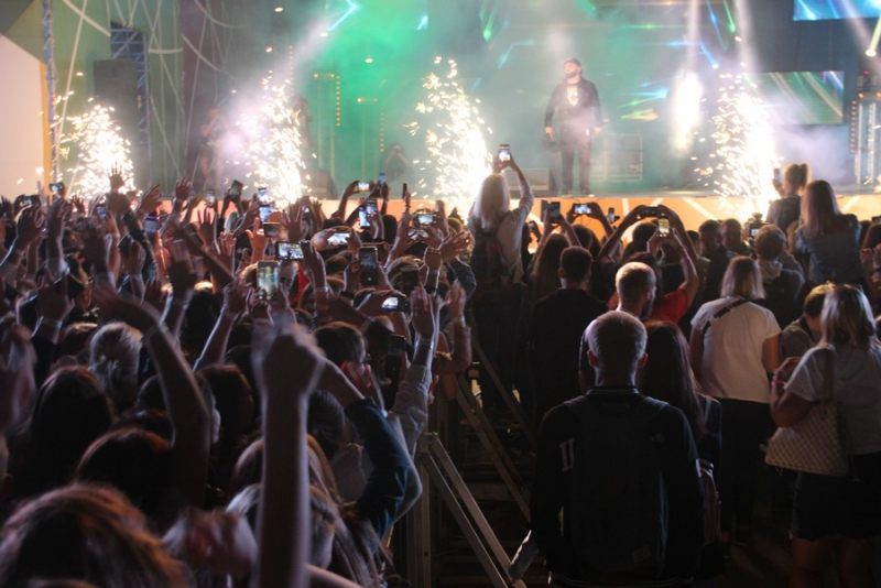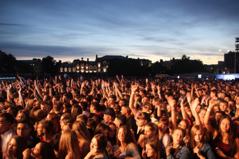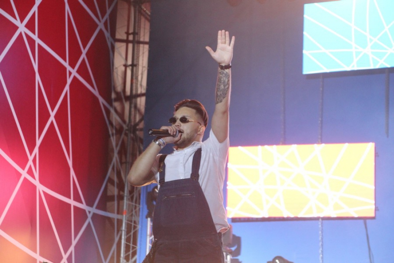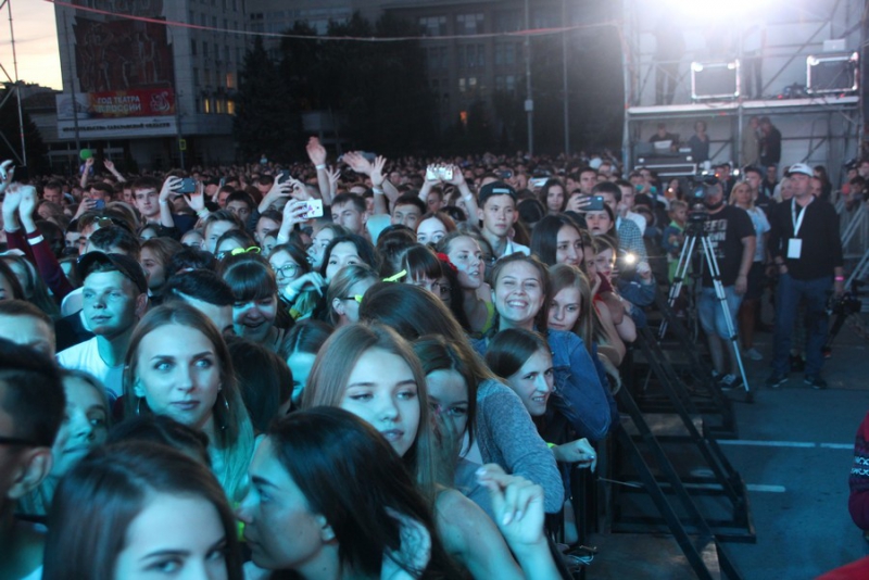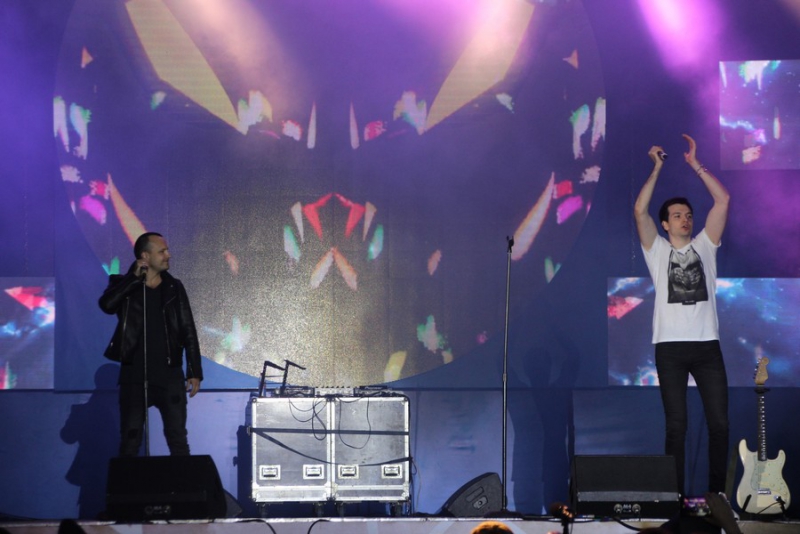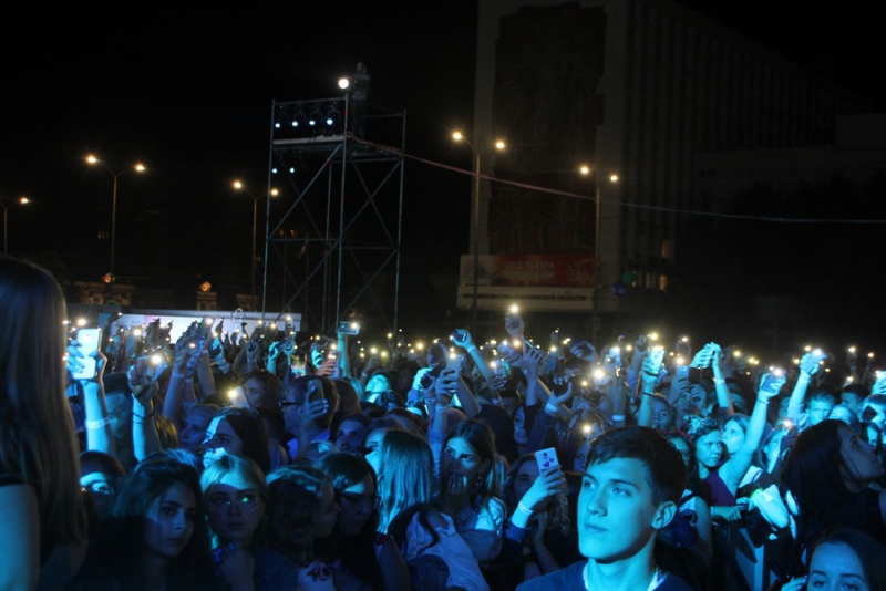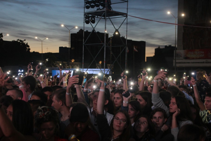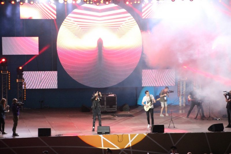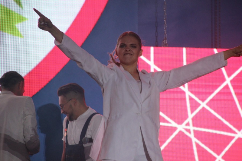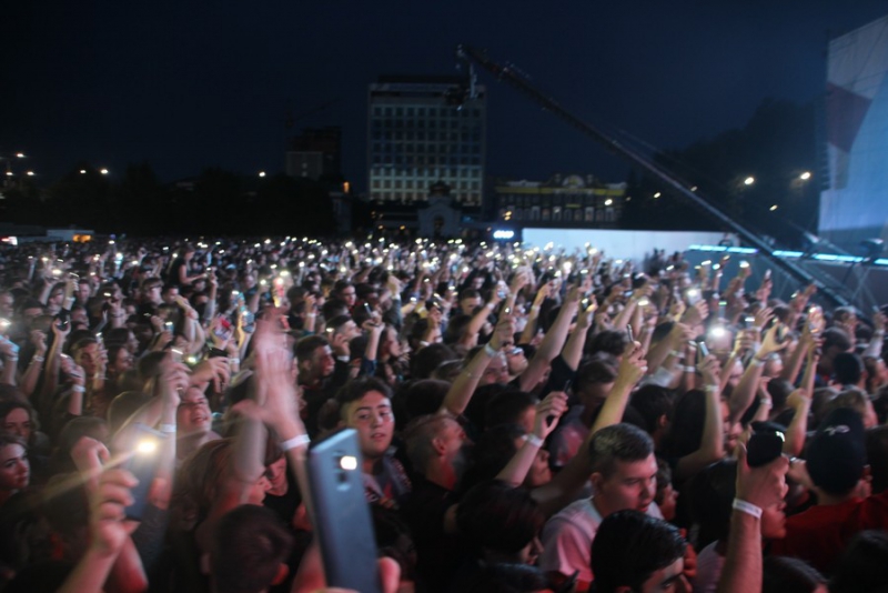 После поздравлений губернатора начался праздничный концерт. Он начался с выступления рэпера Джоззи. Следующим выступающим стала группа «Te100steron». Под песню «Эта не женщина, это мечта» один из вокалистов спустился к саратовцам, чтобы они смогли исполнить хит вместе с артистами.