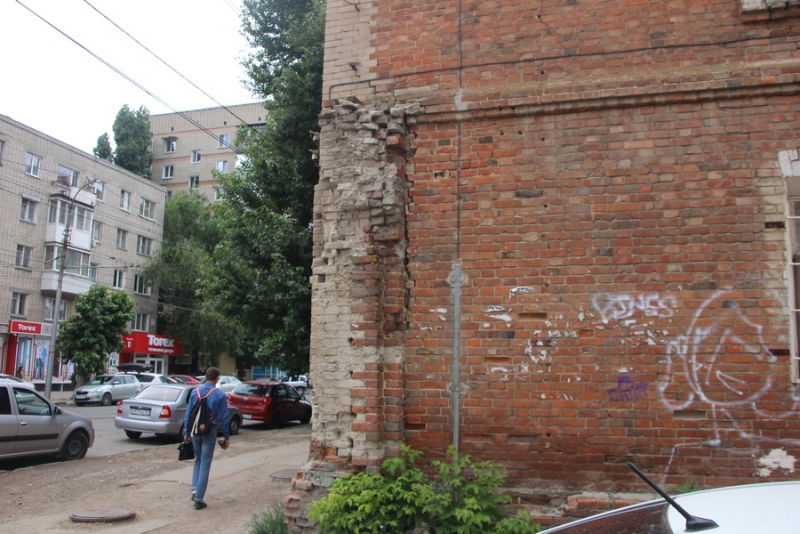 Здание, известное как «Дом Иванова», было построено в начале XX века в стиле модерн. Оно является одним из ярких его образцов в Саратове. В минувшие выходные у дома обвалилась значительная часть кирпичной кладки фасада со стороны двора, оголив деревянные перекрытия и бревна внутренней стены дома. Справа от подъезда валяется груда рухнувших кирпичей, которая ограждена лишь небольшой сигнальной лентой. На первом этаже деформация стены выдавила наружу одну из оконных рам.