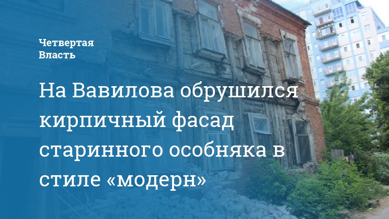 Во Фрунзенском районе Саратова произошло обрушение фасада объекта культурного наследия. ЧП случилось в минувшие выходные у дома №16 по улице Вавилова.