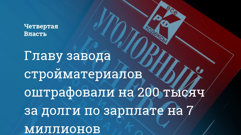 Главу завода стройматериалов оштрафовали на 200 тысяч за долги по зарплате на 7 миллионов