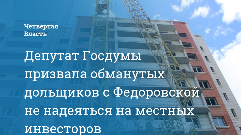Депутат Госдумы призвала обманутых дольщиков с Федоровской не надеяться на местных инвесторов