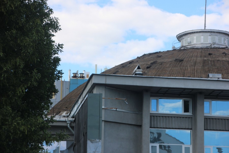 Сейчас вокруг здания прямо на земле валяются куски старой крыши. Работы по замене крыши здания ведутся в рамках масштабной реконструкции здания цирка.
