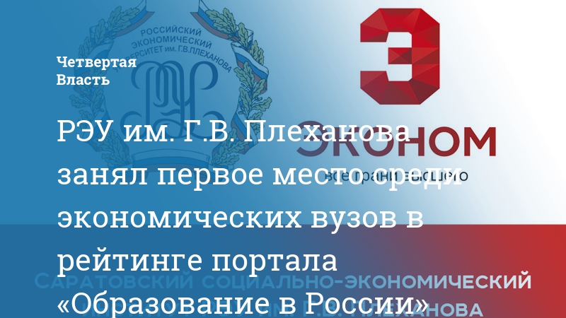 РЭУ им. Г.В. Плеханова занял первое место среди экономических вузов в рейтинге портала «Образование в России» 2019