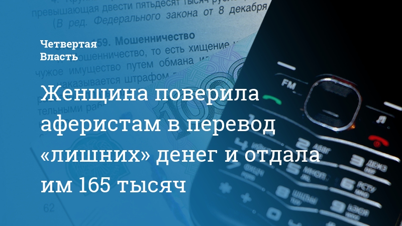 Женщина поверила аферистам в перевод «лишних» денег и отдала им 165 тысяч