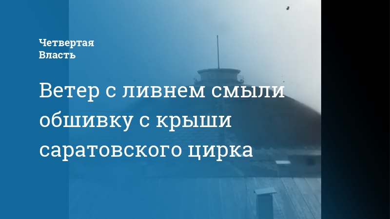 Вчера вечером сильный ветер с ливнем смыл часть кровли с саратовского цирка. Горожане запечатлели на видео, как «черепица» разлетается из-за непогоды.