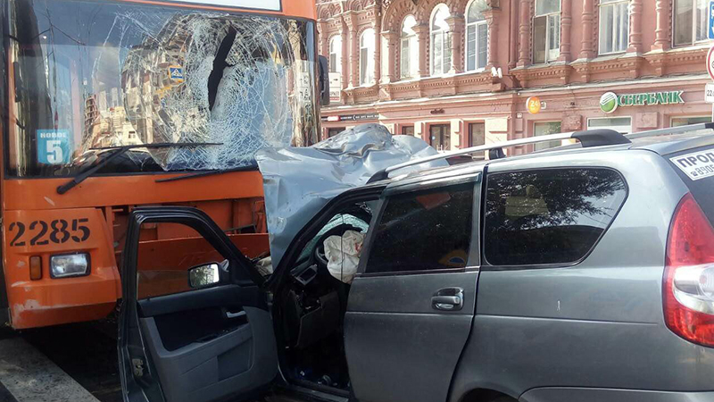 Как рассказали корреспонденту «Четвертой Власти» очевидцы, водитель автомобиля «Лада Приора» сбил прохожую, которая переходила проезжую часть по необорудованному светофором пешеходному переходу, причем легковушка при этом оказалась на встречной полосе. От удара женщина пробила лобовое стекло приближающегося со стороны набережной троллейбуса маршрута №5 и влетела в салон.