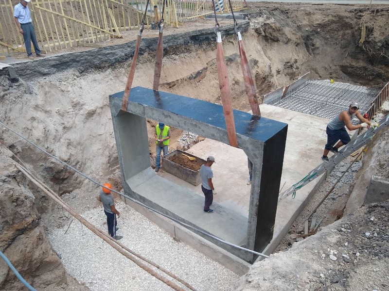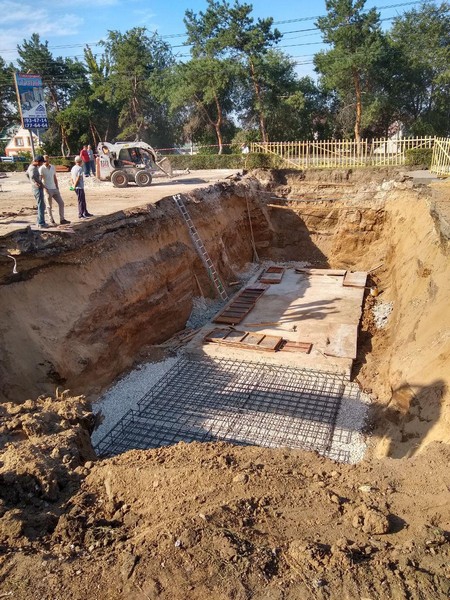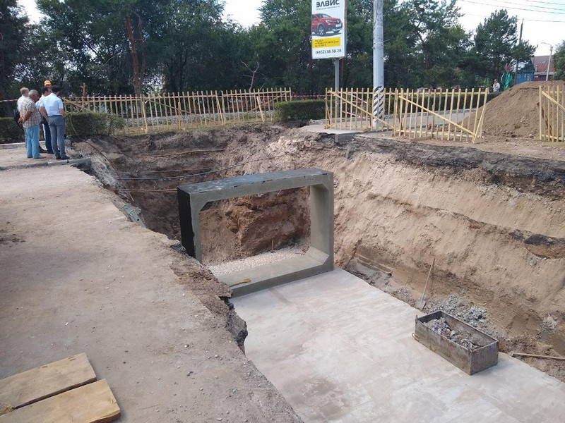 При строительстве пешеходного перехода уже обустроен 400-миллиметровый железобетонный фундамент и проведена обмазочная гидроизоляция. После установки железобетонных звеньев строителям предстоит заделать осадочные швы.
