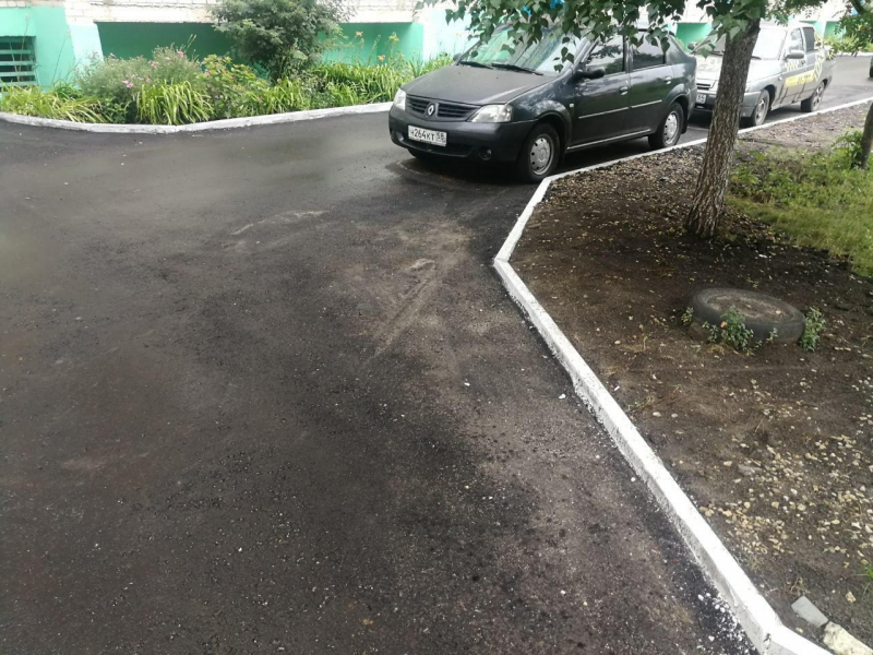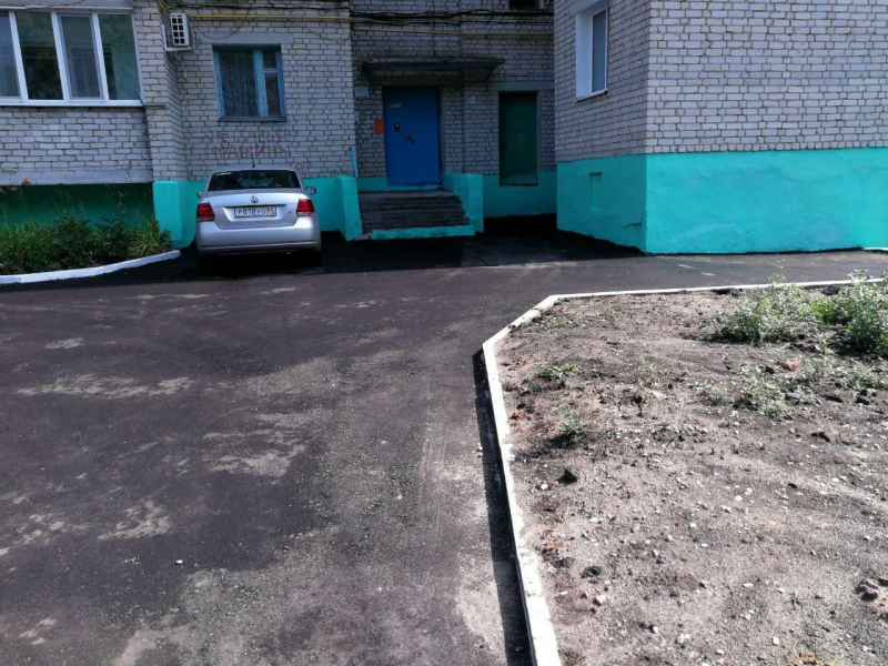 Во дворах ремонтируемых домов поставили тротуарный бортовой камень на дорожный проезд, что категорически неправильно.