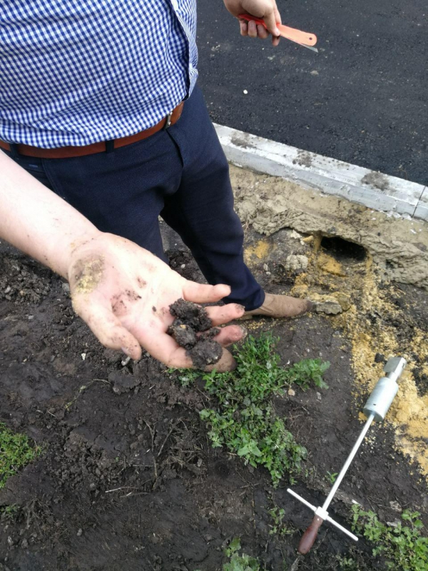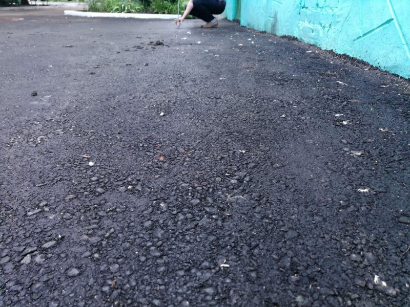 Участники рейда с помощью плотномера выяснили, что в 95% случаев коэффициент уплотнения асфальтобетона на входных группах ниже норматива. Кроме этого нашлись довольно большие участки сегрегации асфальтобетона на проездах.