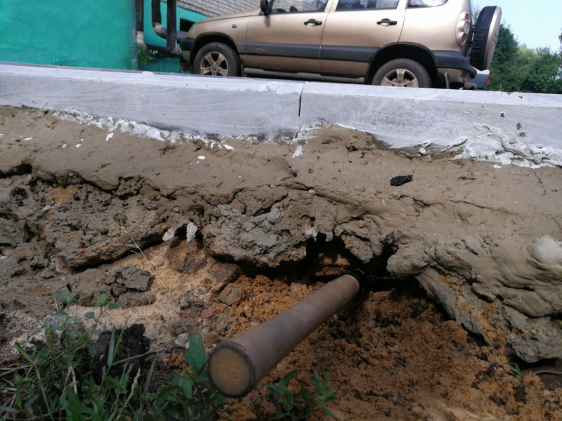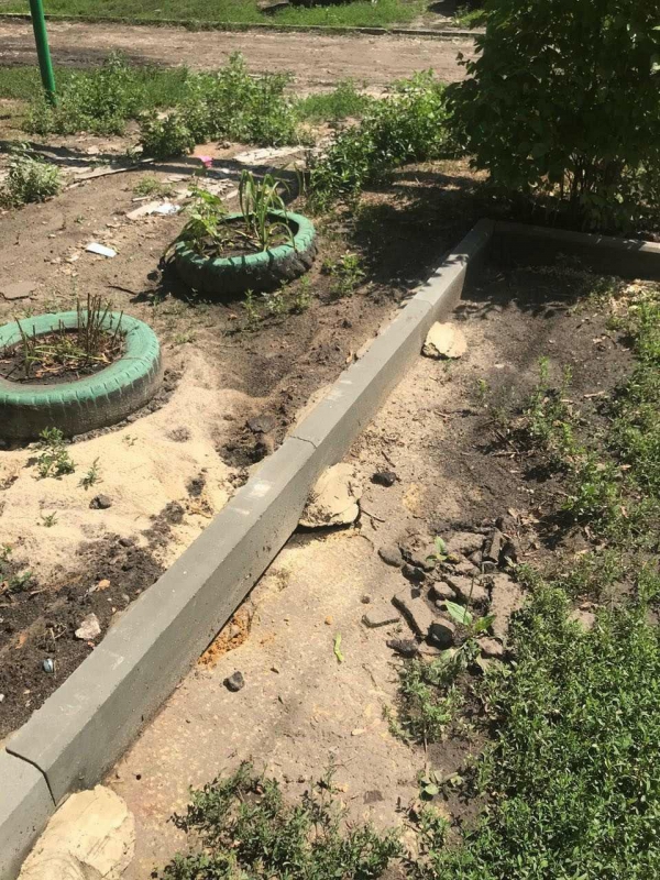 Во дворе домов по ул. XXII Партсъезда бодюр также поставлен на песок, а вместо бетона, что положено по смете, по бокам закреплен цементом.