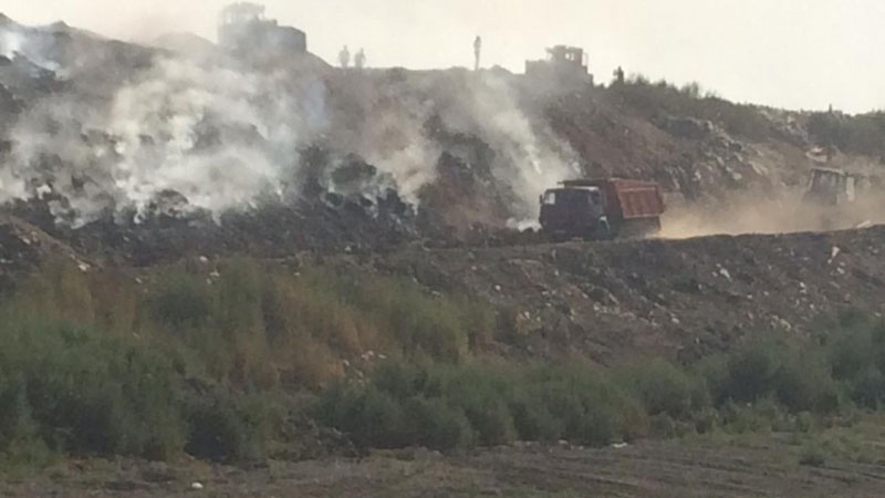 Задымление на полигоне мусороперерабатывающего комплекса обнаружено утром 21 июля. Для локализации очага специалисты расчистили защитную полосу от растительности и мусора.