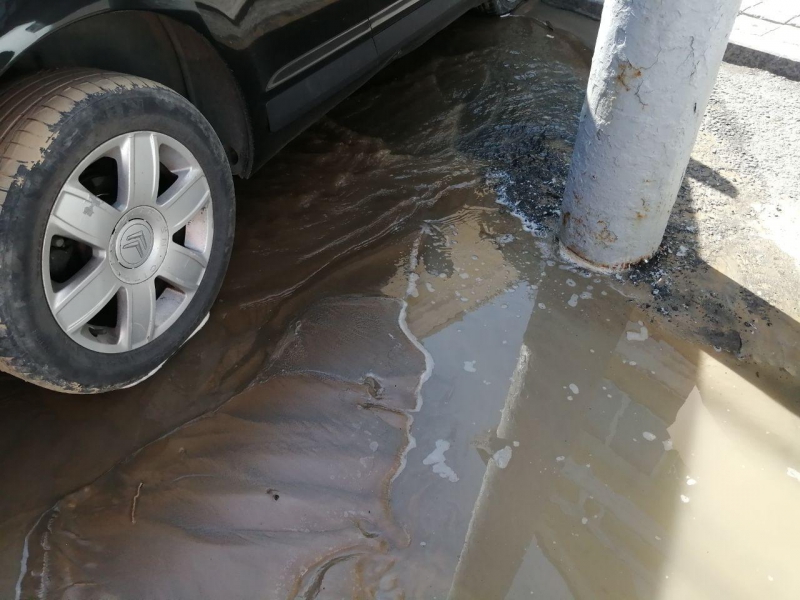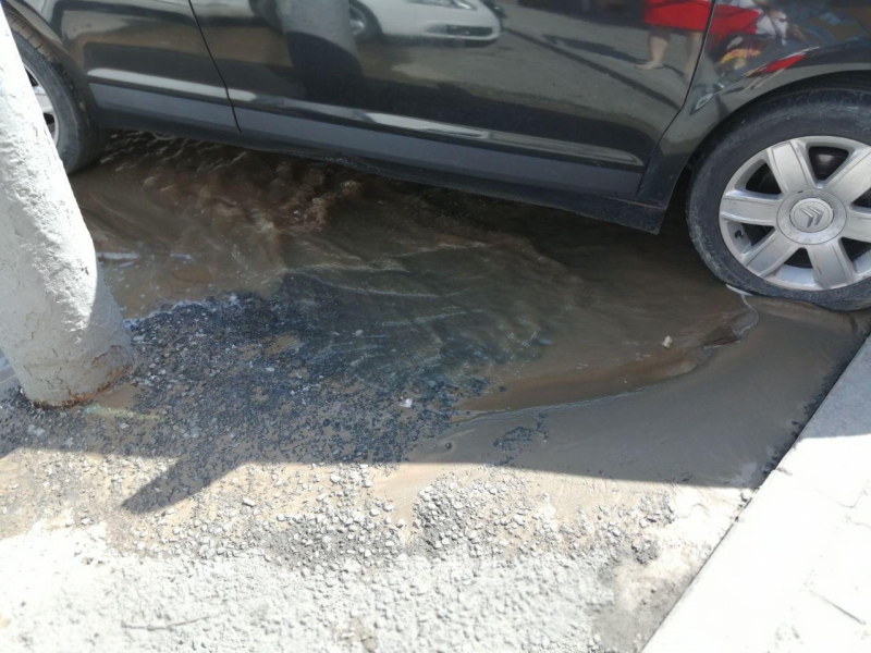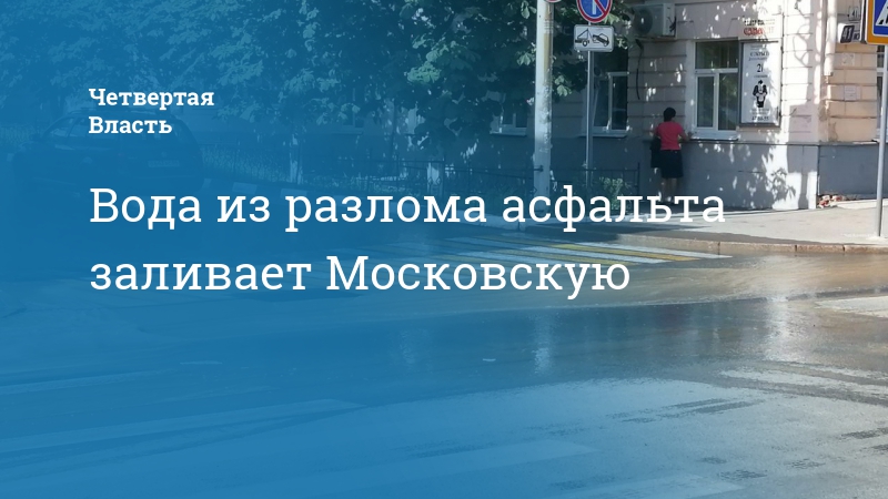 Вода вытекает из разлома асфальта в районе парковочного кармана у дома №43. В настоящее время здесь припаркованы автомобили. Вода стекает по Московской в сторону набережной, создавая серьезную помеху для пешеходов, которые пытаются перейти проезжую часть.