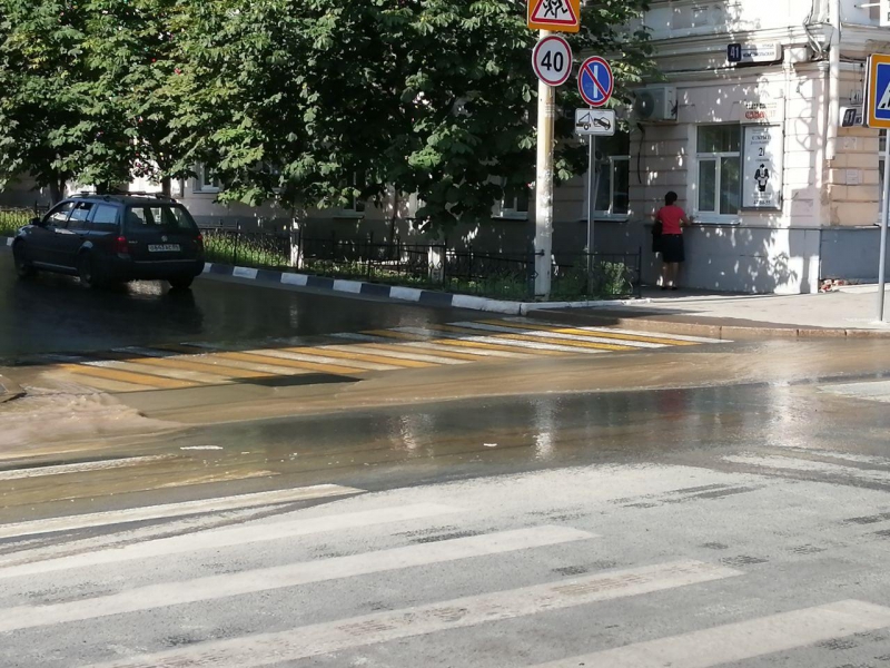 Сегодня, 25 июля, на протяжении нескольких часов в центре Саратова наблюдается течь холодной воды. Источник течи расположен на улице Московской между Некрасова и Комсомольской.