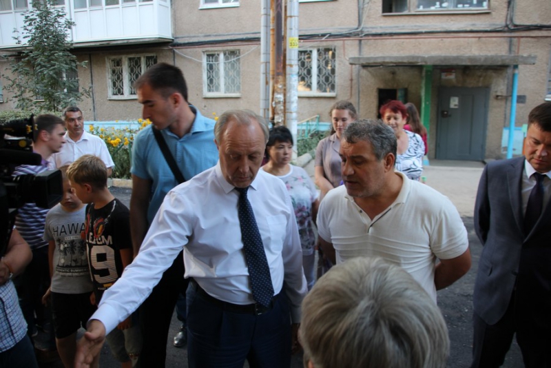 «А почему здесь не обновляется? Дорогу делают, а счастья для жителей нет! Почему так? Просьба: когда мы выходим на дворовую территорию, мы формируем пространство, а не только проезжую часть! Чтобы жители, выйдя из своей квартиры, чувствовали себя в продолжении своей квартиры!» - обратился губернатор к министру строительства и ЖКХ Павлу Мигачеву.
