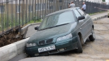 В Саратове ночью под землю провалились тротуар и машина