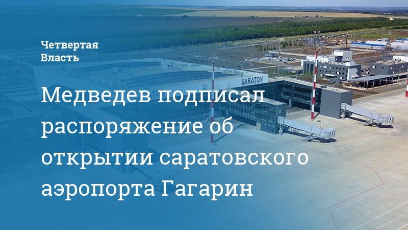 Председатель правительства Российской Федерации Дмитрий Медведев подписал распоряжении об открытии международного аэропорта в Саратове с наименованием Гагарин. Согласно документу, он вступает в силу с сегодняшнего дня, 30 июля.