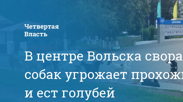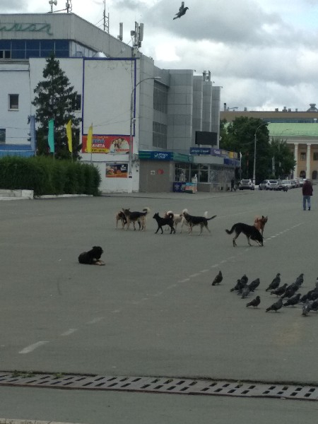 В Вольске на Центральной площади свора агрессивных собак кидается на людей и ест голубей. Об этом сообщили в сообществе «Подслушано в Вольске» соцсети «Вконтакте».