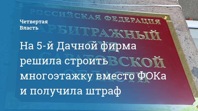 В Ленинском районе Саратова фирма ООО «Прадиум» получила штраф за неправомерную смену типа застройки и не смогла оспорить решение в суде. Как сообщает пресс-служба Арбитражного суда области, фирма хотела построить многоэтажный дом вместо ФОКа.