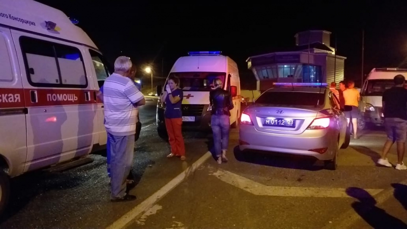 По предварительным сведениям, около 22.20 по местному времени на 16-м километре автодороги Новороссийск-Керчь столкнулись кроссовер «Фольксваген Туарег» и автобус «Хендэ». После этого оба транспортных средства упали в обрыв. Погибли женщина и двое детей из «Фольксвагена», а в автобусе пострадали 44 человека, из них 5 – в тяжелом состоянии. Предположительно, туристы отдыхали в Анапе, и они возвращались на автобусе с экскурсии к водопадам реки Пшада.