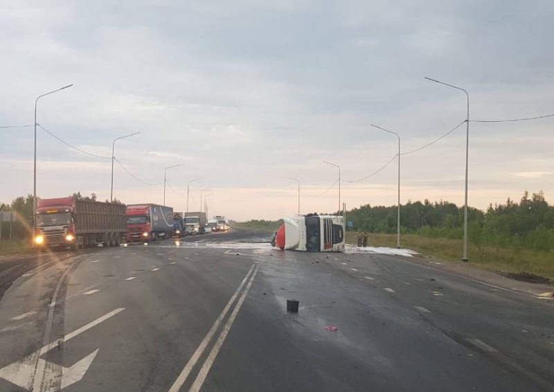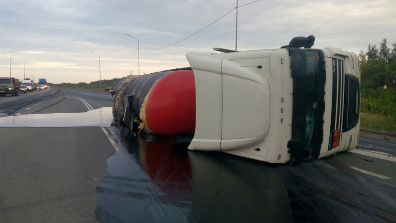 Произошел разлив битума. Организован объезд участка дороги. На месте находятся сотрудники ГИБДД, они контролируют движение.
