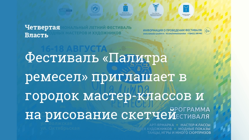 Свыше 50 творческих мастер-классов ожидают гостей II летнего межрегионального фестиваля народных мастеров и художников «Палитра ремесел», который пройдет с 16 по 18 августа в Саратове. В эти «Городские выходные» все желающие смогут погрузиться в атмосферу творчества и создать шедевры hand-made.
