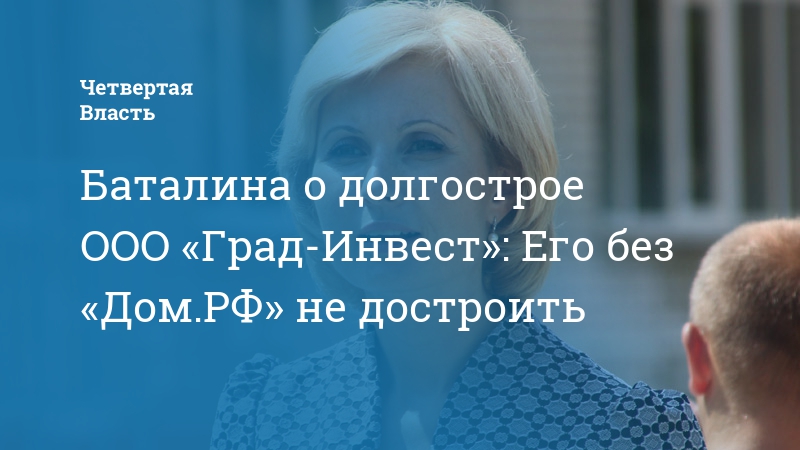 Баталина о долгострое ООО «Град-Инвест»: Его без «Дом.РФ» не достроить