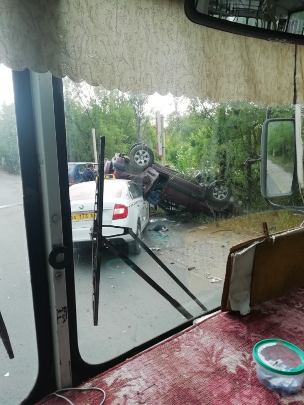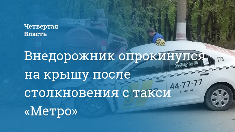 Внедорожник опрокинулся на крышу после столкновения с такси «Метро»