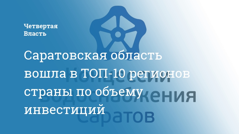 Саратовская область заняла 4 место. В настоящее время в регионе реализуется три концессионных проекта, суммарный объем инвестиционных обязательств составляет 65,98 млрд руб. Значительная часть из них приходится на проект «Централизованная система водоснабжения и водоотведения г.Саратова», концессионером которого является ООО «Концессии водоснабжения – Саратов».