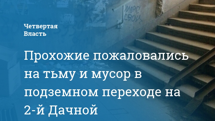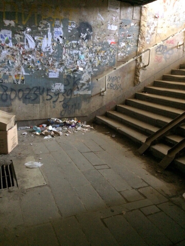 Прохожие пожаловались на тьму и мусор в подземном переходе на 2-й Дачной