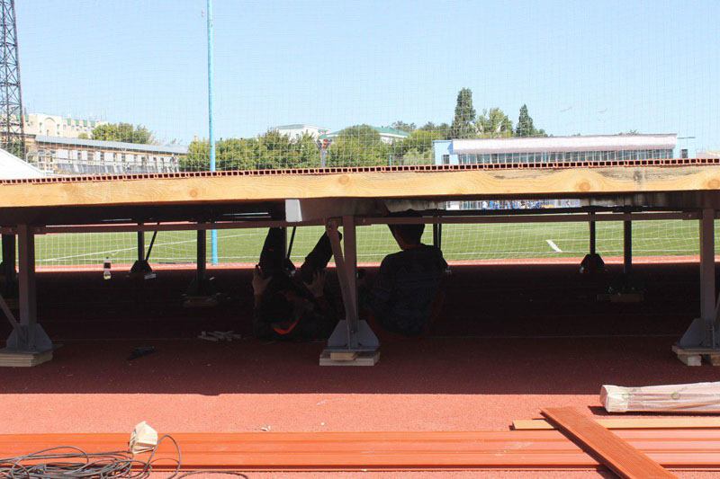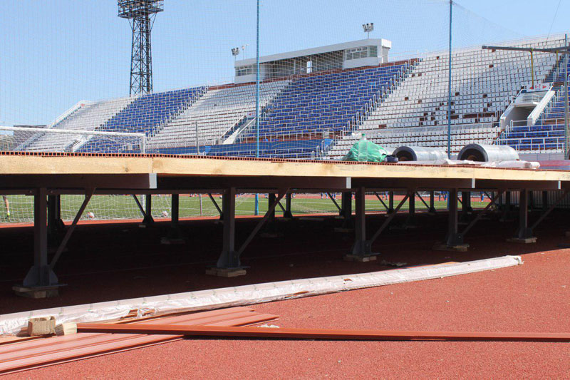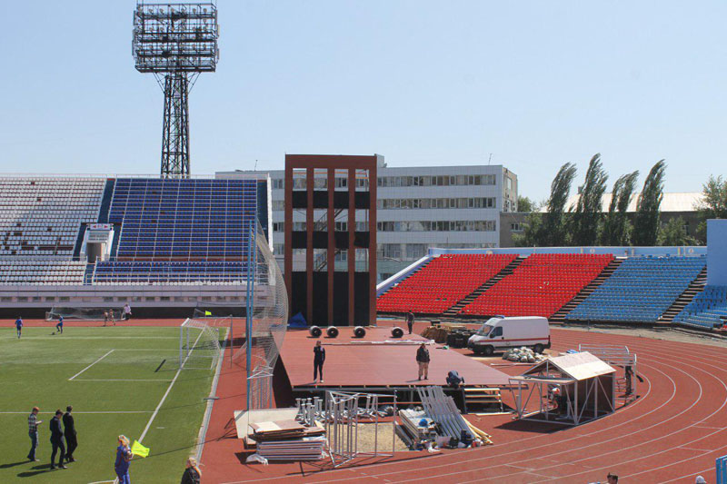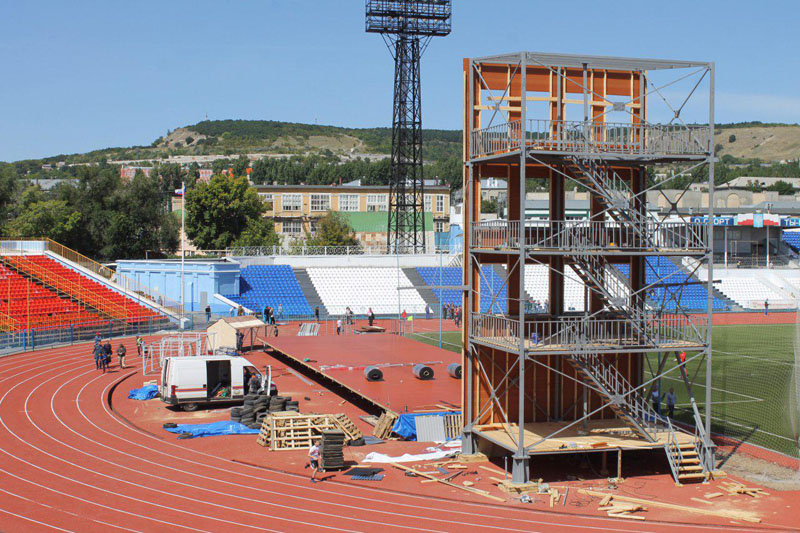 В Саратове на стадионе «Локомотив» завершаются работы по подготовке к чемпионату мира по пожарно-спасательному спорту. Сейчас строители закончили монтаж учебно-тренировочной башни.