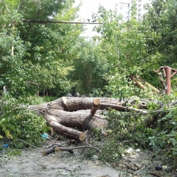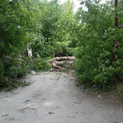 Во дворах возле «Оранжевого» больше недели валяются упавшие деревья