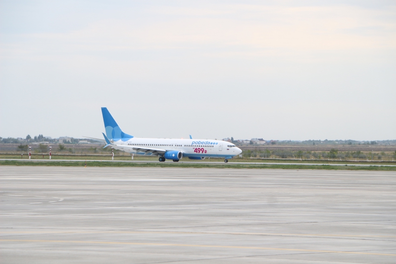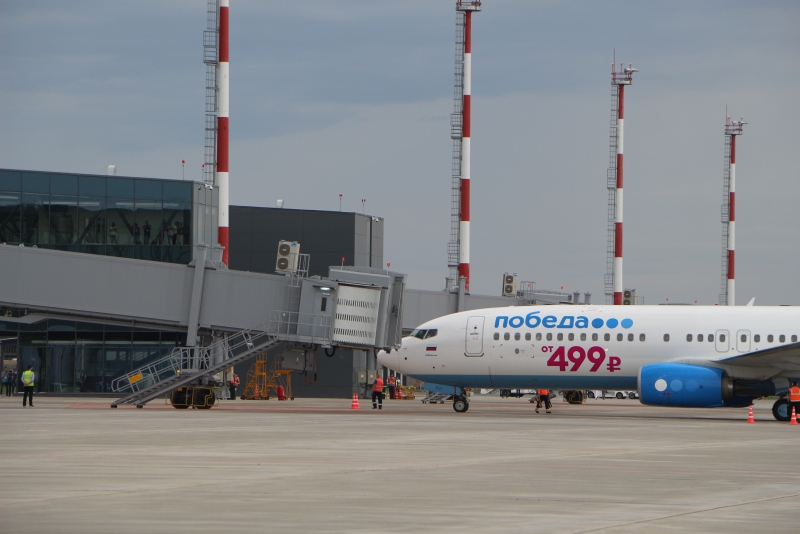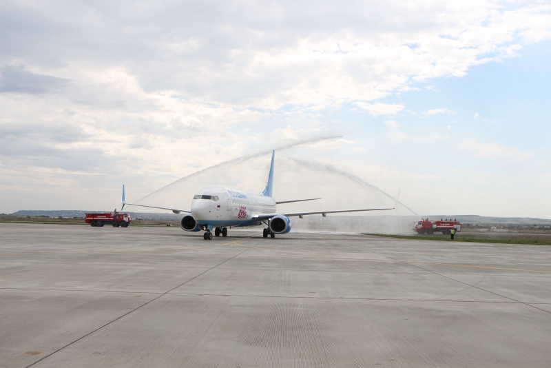 Самолет авиакомпании «Победа» прилетел из Москвы. Приземлился в 12.15 по местному времени. На борту были председатель Государственной думы Вячеслав Володин, глава Росавиации Александр Нерадько, замминистра транспорта РФ Александр Юрчик, председатель совета директоров ГК «Ренова» Виктор Вексельберг, заместитель председателя правления ГК Ринат Халиков, космонавты Юрий Шаргин и Сергей Прокопьев и представители саратовского землячества. Гендиректор "«Победы» Андрей Калмыков выступил в роди бортпроводника.
