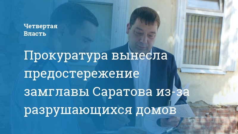 Заместителю администрации Саратова Максиму Сиденко прокуратура вынесла предостережение из-за обрушения кровли и фасада в жилых домах. Документ вручил сегодня, 19 августа, и.о. прокурора города Денис Смирнов.