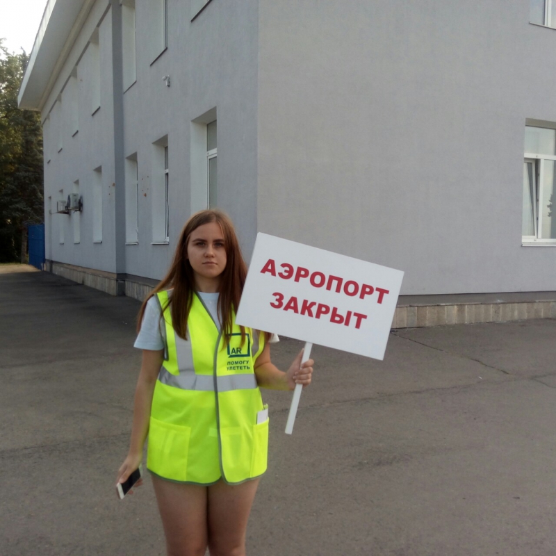 Забывчивых саратовцев встречают волонтеры с табличками «Аэропорт закрыт»
