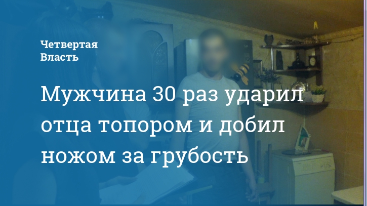Это разозлило сына. Когда родственник лежал на диване, он взял в руки топор и свыше 30 раз ударил его по голове. На этом буян не успокоился. Он схватил кухонный нож и более 20 раз ударил пострадавшего в грудь и живот. От полученных телесных повреждений и обширной кровопотери тот скончался на месте. По данному факту возбуждено дело по части 1 статьи 105 УК РФ (убийство).
