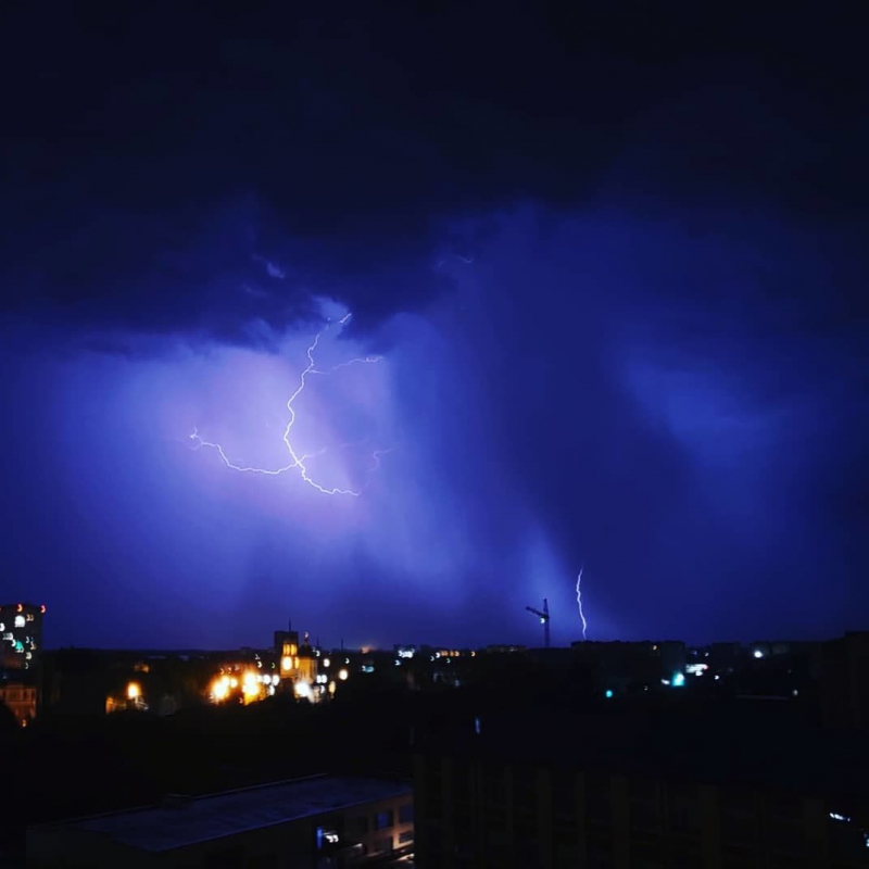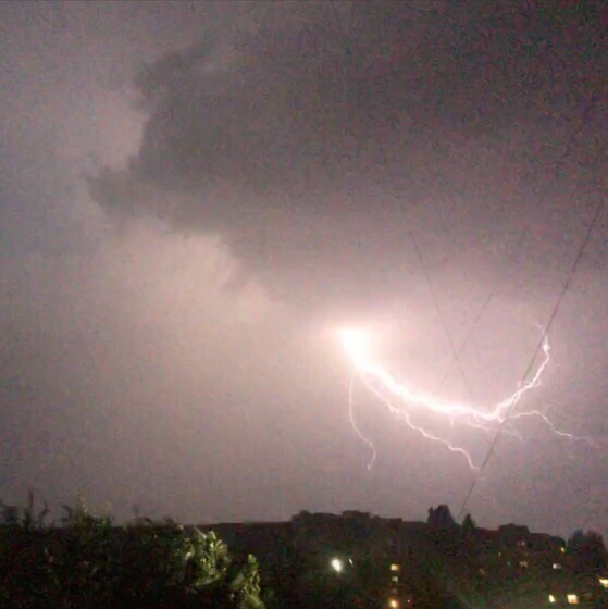 Ночью саратовцы фотографировали молнии, град и затопленные улицы