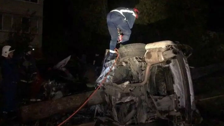 Столб, в который он въехал, повредил припаркованные неподалеку «БМВ» и «Калину». Людей в машинах не было.