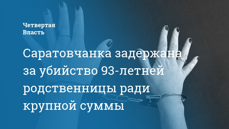Саратовчанка задержана за убийство 93-летней родственницы ради крупной суммы