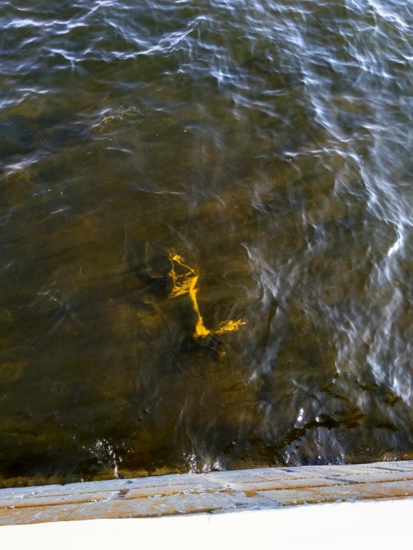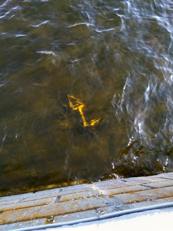 По его словам, он увидел велосипед в воде на нижнем ярусе пешеходной зоны между улицами Октябрьская и Князевский взвоз. На снимке видно, что транспорт лежит на боку в паре метров от берега.