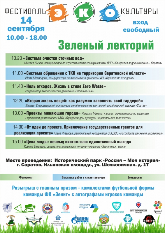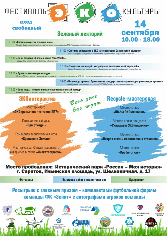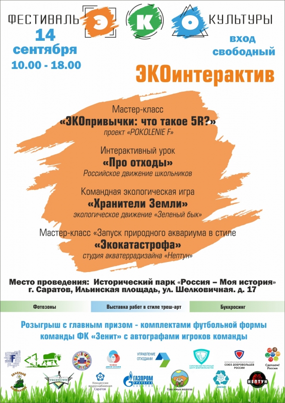 Первый Фестиваль ЭКОкультуры пройдет 14 сентября на площадке Исторического парка «Россия – Моя история». Его участники подготовили для саратовцев обширную программу, рассчитанную на самые разные возрастные категории. Но всех объединяет одно – стремление к осознанному потреблению и бережному отношению к окружающей среде.