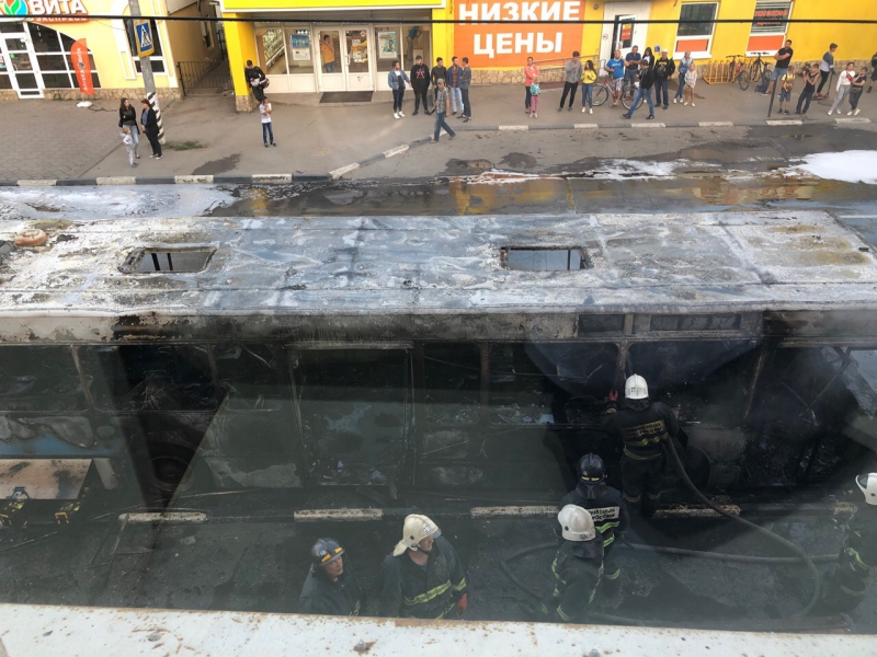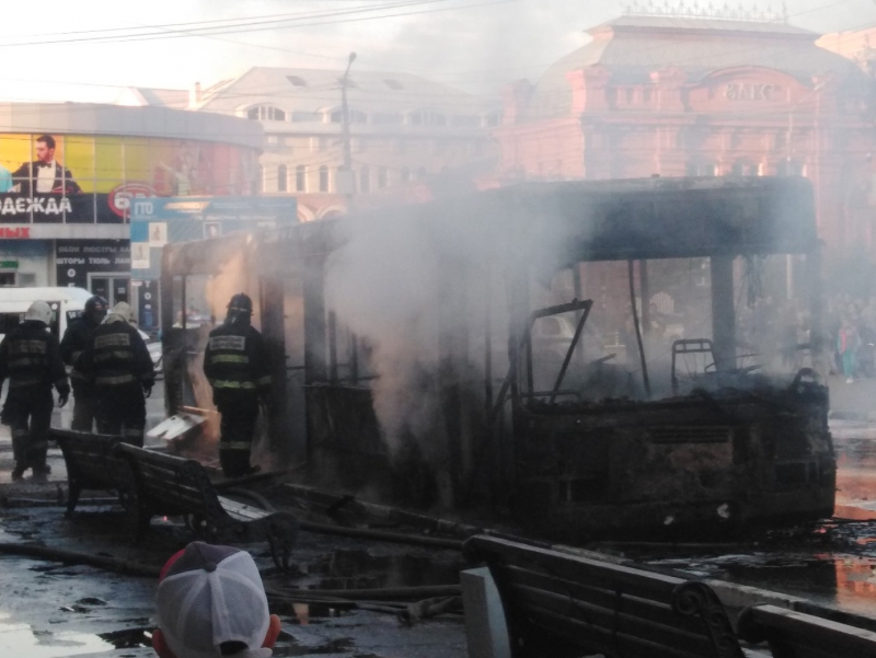 По словам очевидцев, ЧП произошло у площади Свободы в районе ярмарки. Пассажирский транспорт сгорел до тла, к счастью, пассажиры успели выбраться из него.