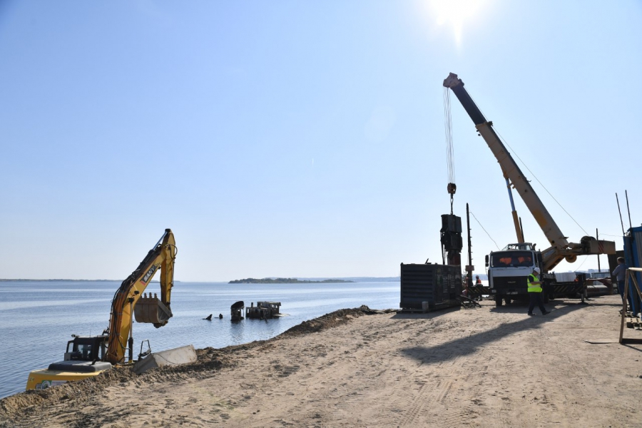 По словам подрядчика, сейчас расчистили берег, приступили к установке новых свай, планируют строительство мола. В этом году должны сделать шпунтовую стенку, произвести отсыпку песком, а в следующем – приступить к благоустройству территории. Строители пообещали завершить работы по молу до 15 октября, основной объем будет выполнен с воды.