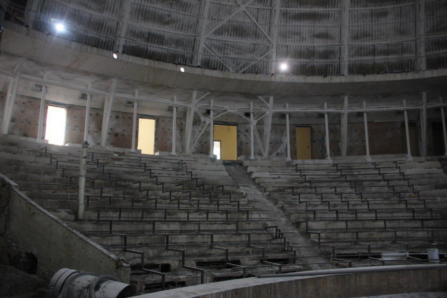 Далее представитель подрядной организации рассказал о проведенных работах в цирке и о тех, что ожидаются впереди. Особенно он отметил работы на куполе и зрительном зале. Так, купол собираются отделать специальными алюминиевыми панелями, а снаружи он будет покрыт цинковой чешуей, уложенной в 47 рядов. Далее строитель пояснил, что из-за особенности реконструкции зрительных рядов в зале станет несколько меньше.