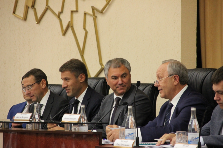 Спикер проводит встречу с участниками долевого строительства 30 многоквартирных домов, чьи средства привлечены для строительства многоквартирных домов, а права при этом нарушены. В мероприятии участвует генеральный директор корпорации «Дом.РФ» Александр Плутник.