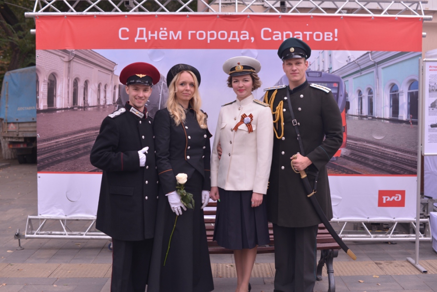 Основная площадка Приволжской железной дороги в День города Саратова была организована на углу Волжской и Комсомольской. С 14 по 15 сентября там работала фотозона с железнодорожниками, одетыми форму различных эпох.