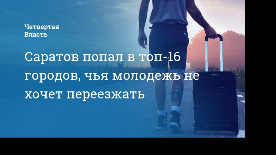 Возможность переезда готовы рассмотреть всего 28% молодых саратовцев — столько же, сколько в Казани и Красноярске. Саратов с таким результатом расположился на 16-м месте.